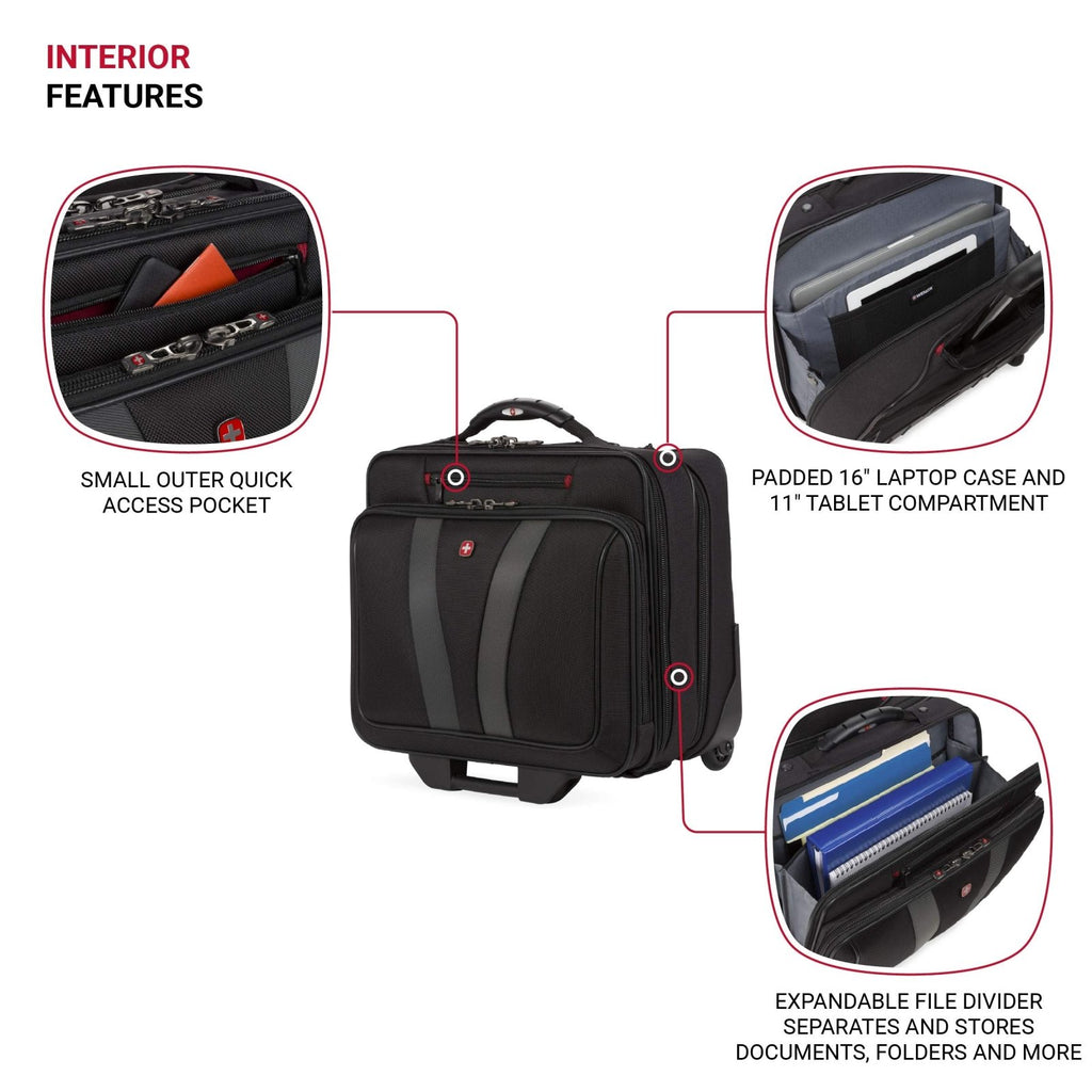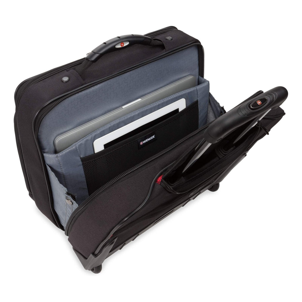 Brand: WengerColor: BlackFeatures: Foam padded compartment protects up to most 15.6" laptops Pass-Thru trolley sleeve slides over the handle of wheeled luggage for easy travel with multiple bags Quick Pocket for easy access to essentials Secure lock handle and easy-glide wheels 9.8425196850393704x16.535433070866141x13.779527559055119 Binding: Apparelmodel number: 602684Part Number: 602684Details: Description Redesigned...