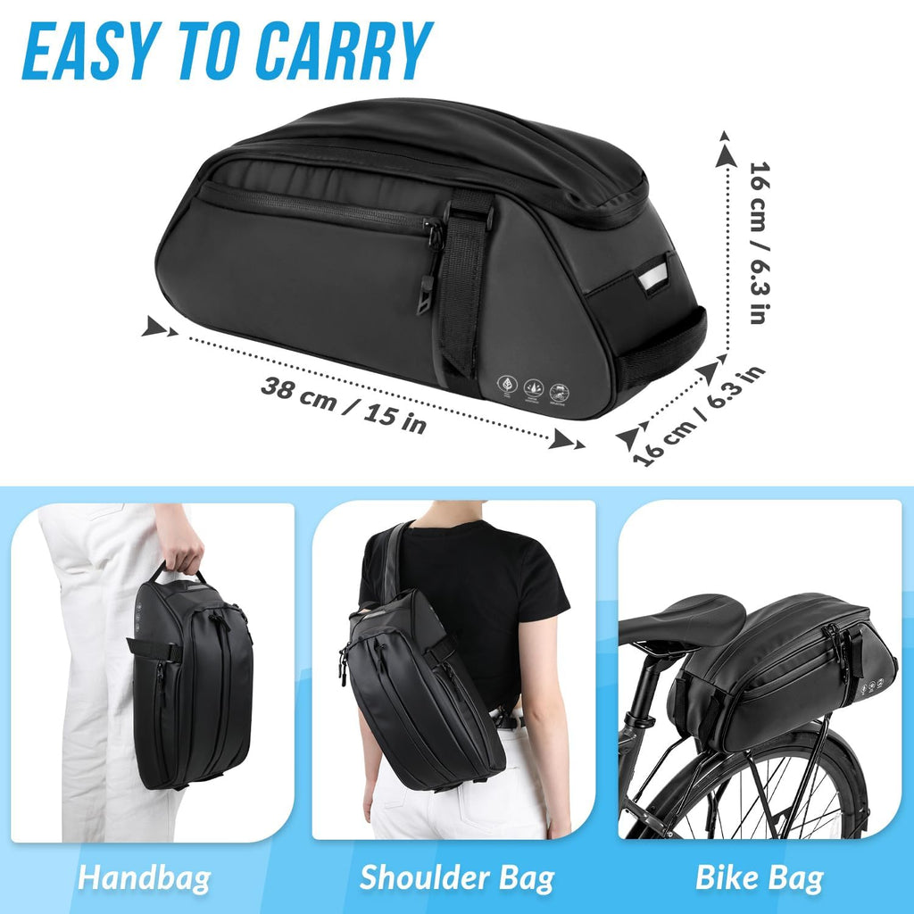 WOTOW Waterproof Rear Bike Rack Bag, Reflective Bike Storage Saddle Bag for Bicycles Rear Rack, 8L Panniers Bike Ebike Trunk Bag Cycling Pounch for Travel Commute