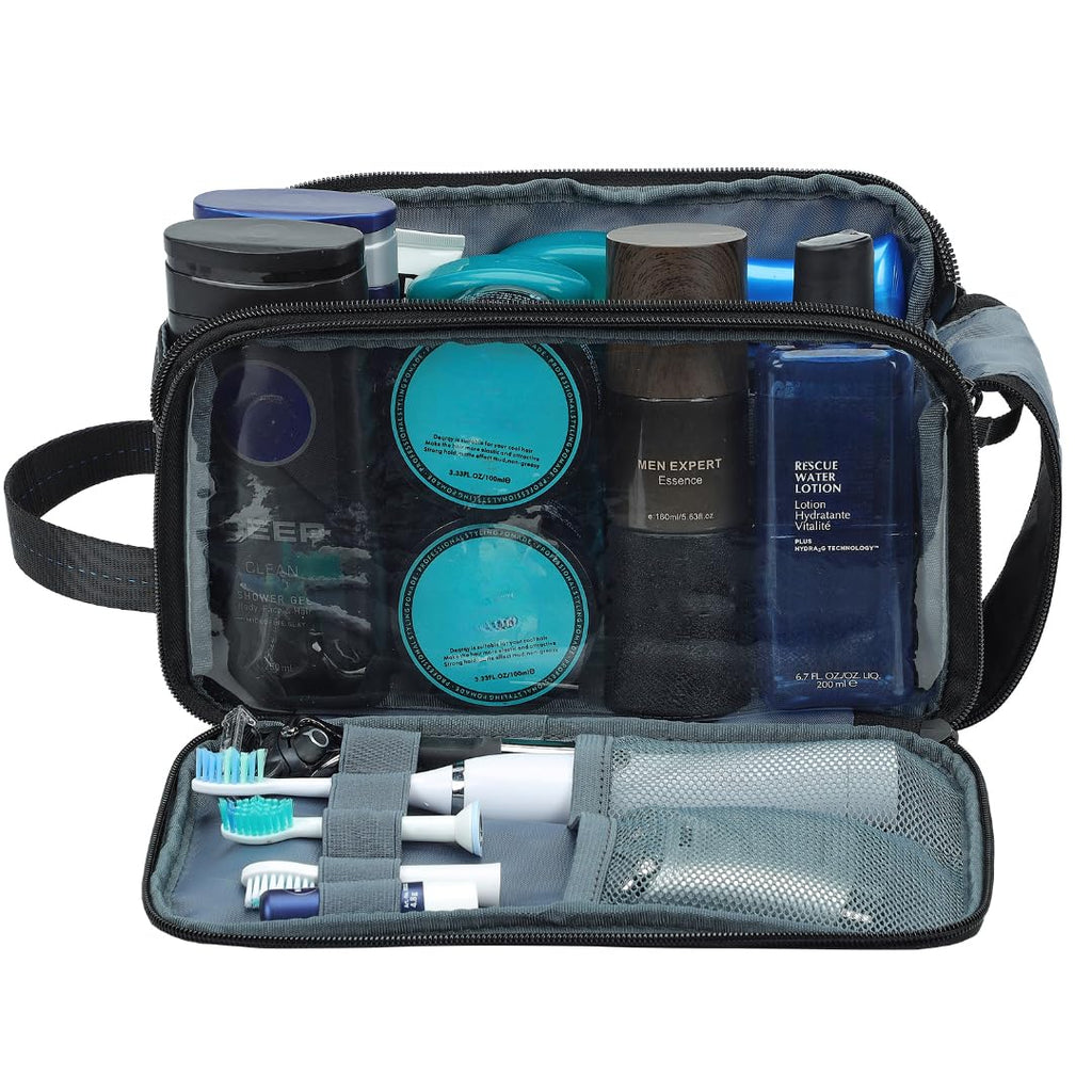 Brand: ZEEMOColor: BlackFeatures: EXTRA LARGE CAPACIT: 10.5 x 5.5 x 6 inches. Meet all the storage needs of full-size toiletries or shaving supplies, and the bottles can stand upright in it. Multiple pockets inside keep all personal items beautifully organized FULLY SEE-THROUGH: The compartment is visible, and you can easily...