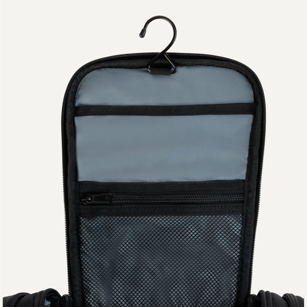 Amazon Essentials Spacious Toiletry Bag, Hanging Cosmetic Dopp Kit with Multiple Compartments, Durable 1680D Polyester, Large Capacity Storage, Compact Design, Black (Previously Amazon Basics)