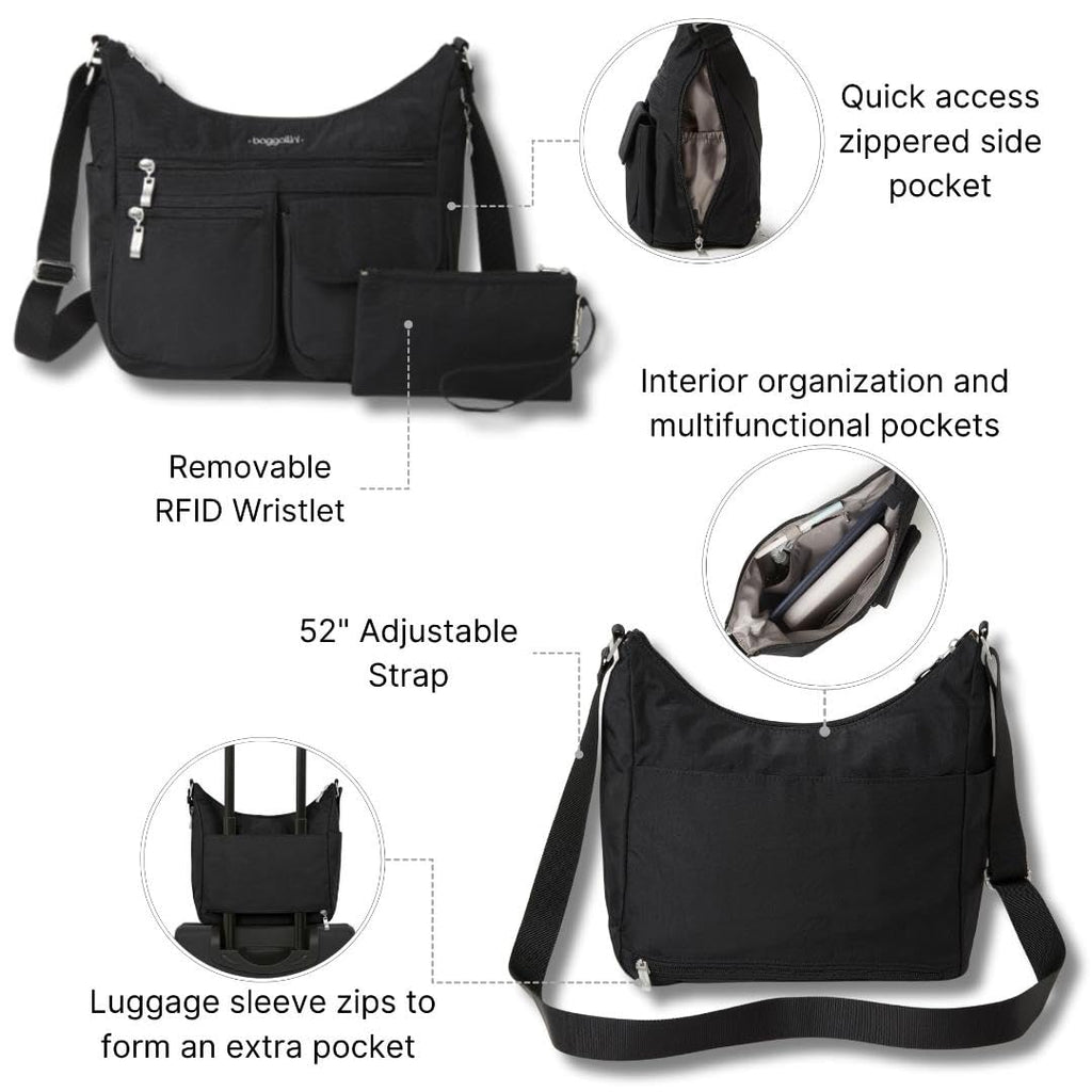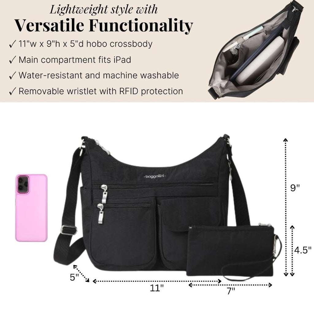 Baggallini Everywhere Bagg - Hobo Crossbody Bag for Women with RFID Wristlet – Water-resistant Travel Bag