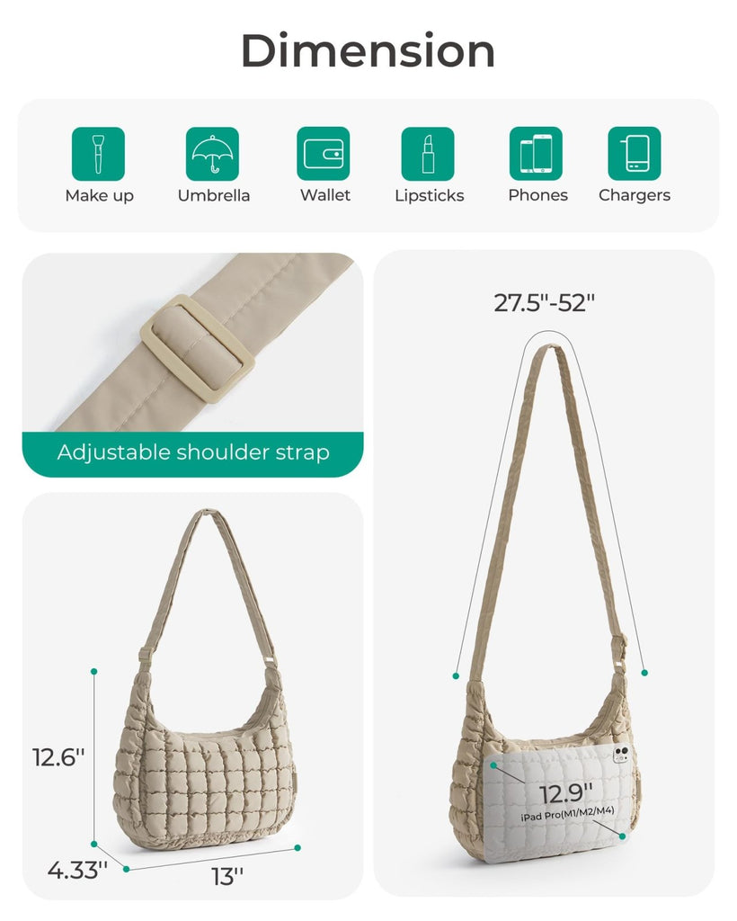 - Fluffy & Fashion-Forward Design: "From brunch dates to weekend getaways", this quilted puffy small crossbody bag adds a playful yet chic touch to any outfit. The soft, cloud-like texture and quilted stitching make it a trendy statement piece for casual outings, coffee runs, or even music festivals