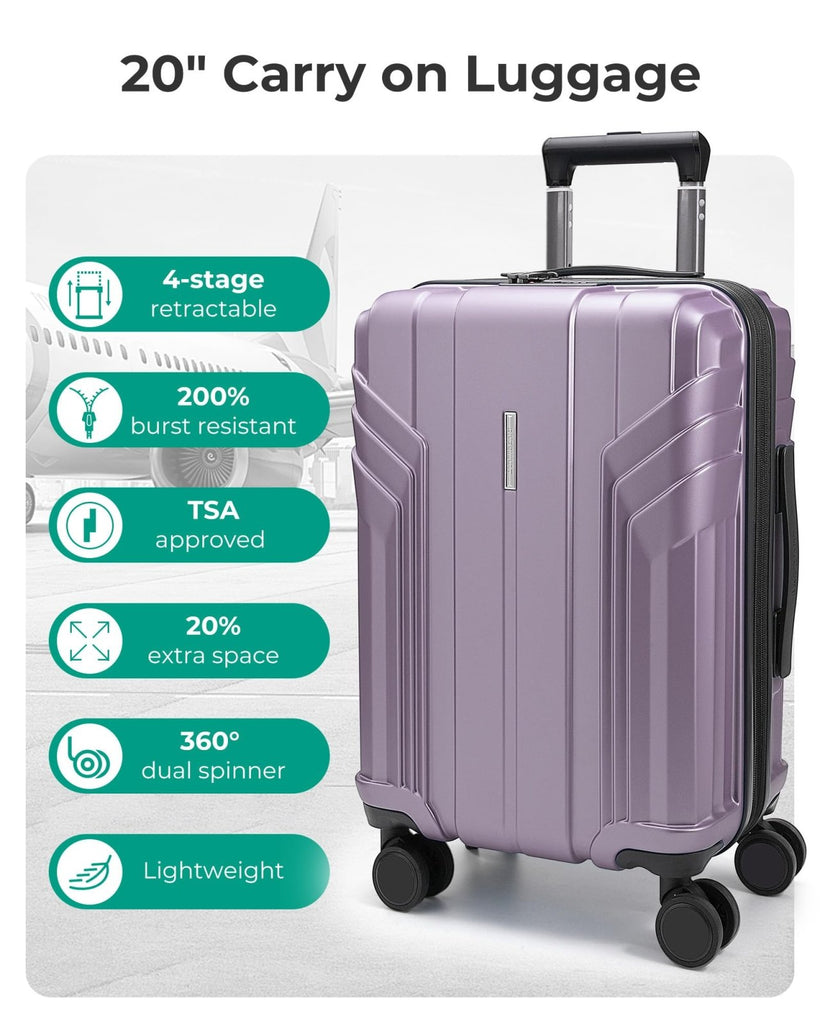 BAGSMART Expandable Carry On Luggage 22x14x9 Airline Approved, 20 Inch Travel Luggage with Spinner Wheels, Lightweight Hard Shell Suitcase Carry on Lavender Purple