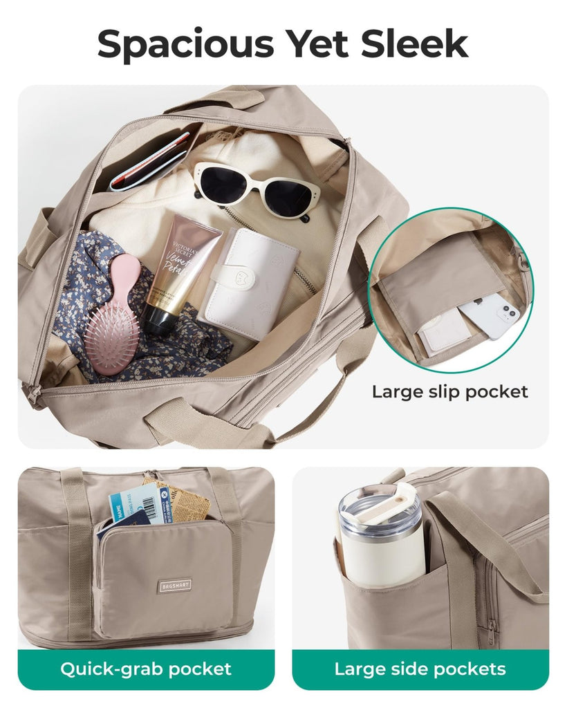- 🛡️ Versatile for Any Adventure: BAGSMART expandable weekender bag is crafted from soft, thick, and durable material, the water-resistant fabric and robust zippers handle any scenario, moving effortlessly between travel, fitness, and shopping without sacrificing strength or style