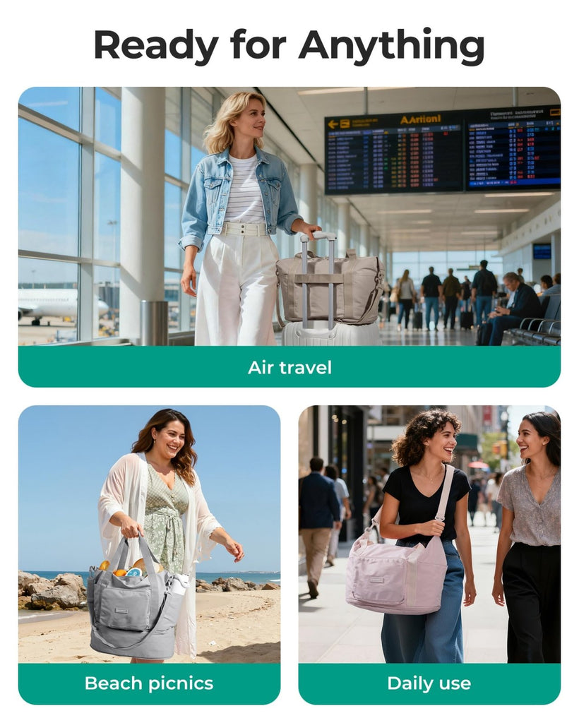 - ✈️ Ready to Go: Airline-approved Bag, fits perfectly under the seat to avoid baggage fees as a personal item bag. It easily slides onto the handle of your suitcase and stays in place, while the soft handles and adjustable shoulder strap ensure ease of carrying. Make airport travel hassle-free. Please note: Not a personal item in expanded mode