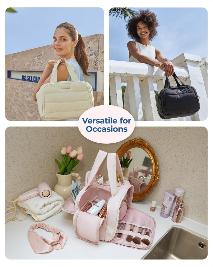 - Ultra Light and Soft Materials: Made of soft and luxurious Taslan fabric. This puffer toiletry bag feels like cotton candy, giving people a relaxed and comfortable atmosphere. Also a reliable, functional, and fashionable makeup bag. Efinitely an ideal Christmas gift for yourself, your family, and your friend