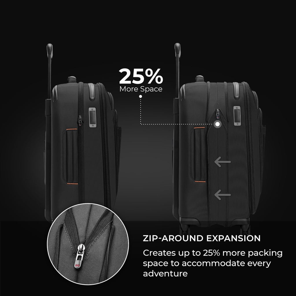 Briggs & Riley Domestic 22" Carry On Expandable Spinner - Luggage for Travel, Suitcases with Wheels, Softside Rolling Bag for Men & Women - ZDX Collection, Black