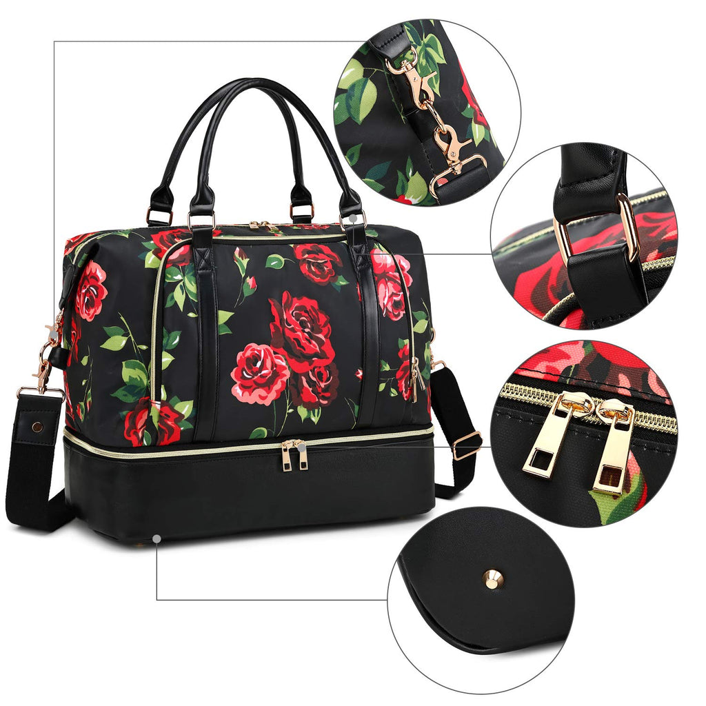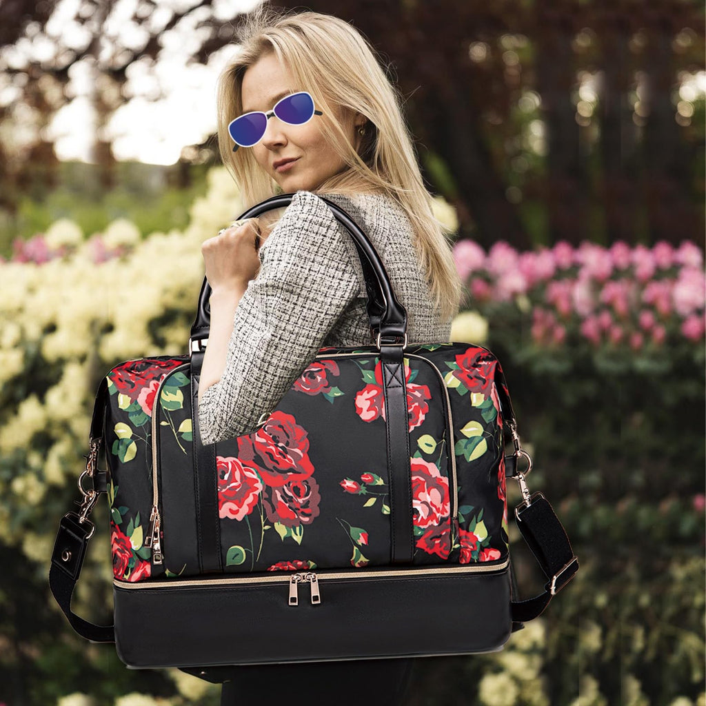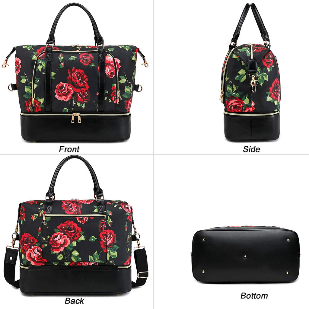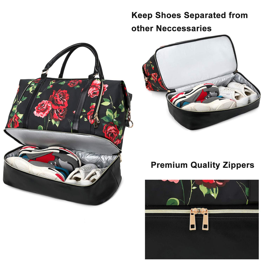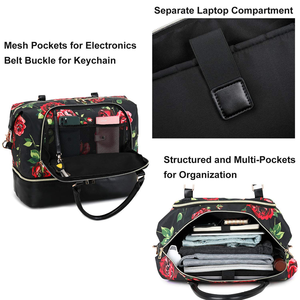 CAMTOP Women Ladies Travel Weekender Bag Overnight Duffel Carry-on Tote Bag fit 15.6 Inch Laptop Computer (6012/Flower with Shoe Compartment)