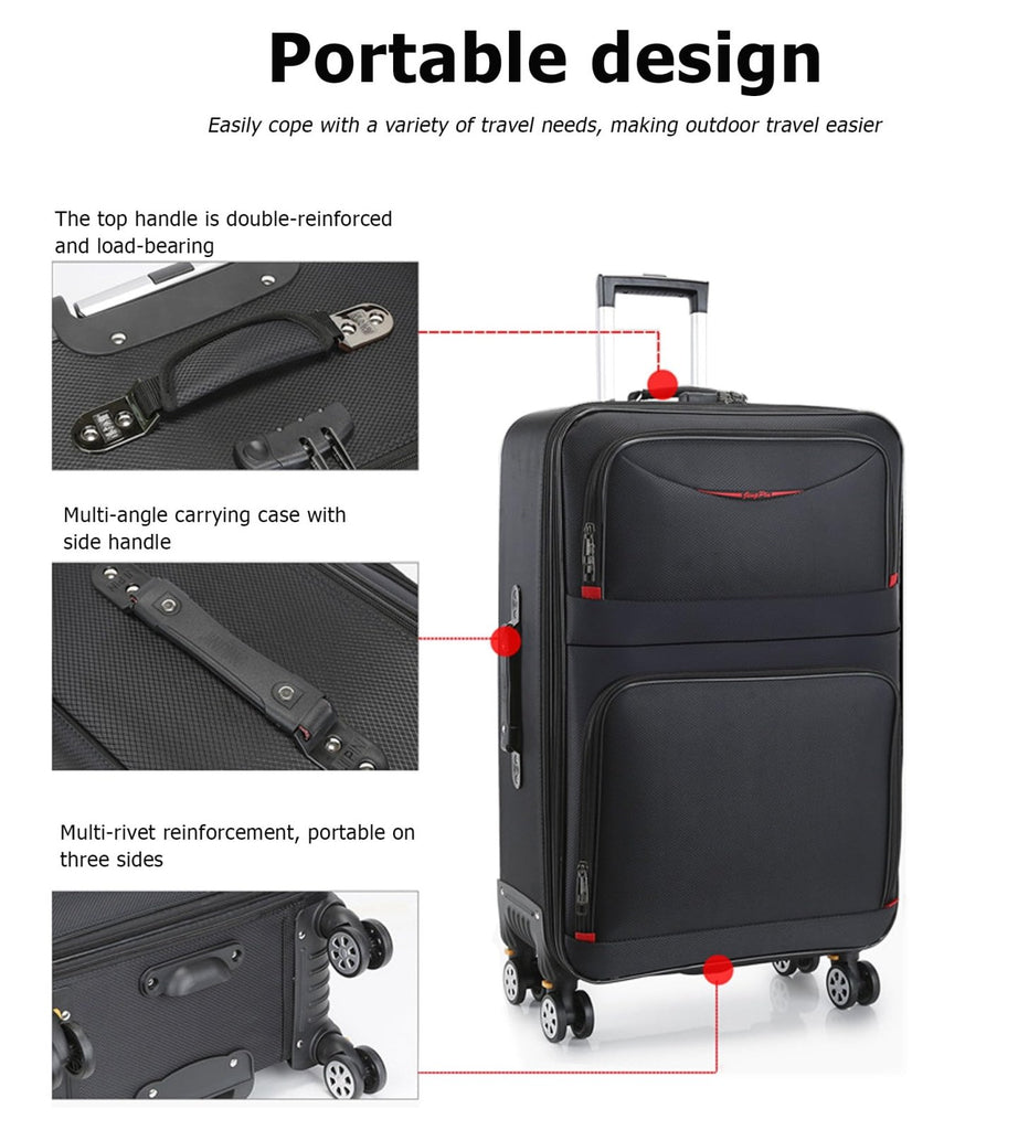 - 【Premium Waterproof Oxford Cloth Material】: Made of high-density oxford fabric,resists stains and waterproof, high abrasion resistance to keep the Softside luggage beautiful. Inside adopted polyester lining is more durable. Reinforced and upgraded zipper that won't drop or break easily, offering added security for your possessions and privacy.