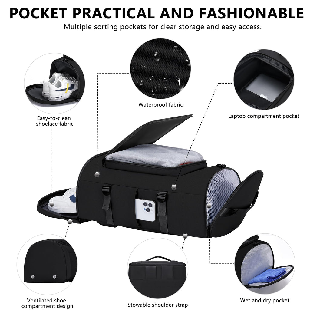 - 3 Carrying Options: This gym bag's shoulder straps can be hidden. With a removable crossbody shoulder strap, so you can switch the way you use it: as a backpack, as a crossbody travel bag, or as a handbag
