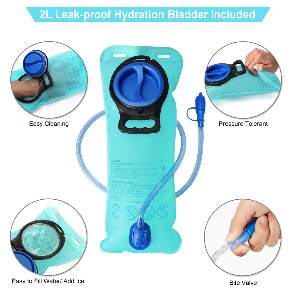 - [2L Large Hydration Bladder]: Includes a food-grade, BPA-free and odorless water bladder. Leak-proof performance is good with its thickened design