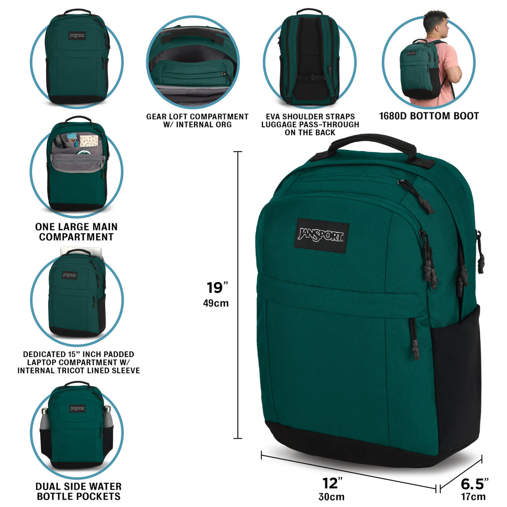 JanSport Landings Pack – Versatile Backpack with Extra Soft Back Panel, Dedicated Laptop Compartment, and Convenient Features Elevate your everyday adventures with the JanSport Landings Pack, a versatile and stylish backpack designed to meet all your organizational and comfort needs. Perfect for individuals aged 13 and older, this backpack combines spacious storage with thoughtful features to enhance your daily commute or travel experiences. The Landings Pack boasts a large main compartment, providing ample space for clothing or gear, ensuring you can carry all your essentials with ease. For added convenience, the backpack includes dual side water bottle pockets, keeping your drinks secure and easily accessible throughout the day. Protect your laptop with confidence in the dedicated 15-inch padded compartment, which features an internal tricot-lined sleeve to safeguard your device from bumps and scratches. The zippered front pocket is ideal for quick-access items, while the gear loft compartment with internal organization helps keep smaller accessories neatly arranged and within reach. Designed with comfort in mind, the Landings Pack features an extra soft back panel and EVA shoulder straps, reducing strain and providing a comfortable carrying experience. The padded top grab handle wrapped in AX suede adds a touch of luxury and ease of handling, while the sternum strap with a whistle buckle ensures added safety and stability during wear. For added functionality, the backpack includes a luggage pass-through on the back, making it easy to attach to rolling luggage for seamless travel. Dimensions: 19 x 12 x 6.5 inches – The perfect size for those who need a spacious yet manageable backpack. Disclaimer: This product is intended for persons 13 years of age and older. Upgrade your daily carry with the JanSport Landings Pack. Its combination of ample storage, advanced organization, and premium comfort features make it an excellent choice for any busy lifestyle.