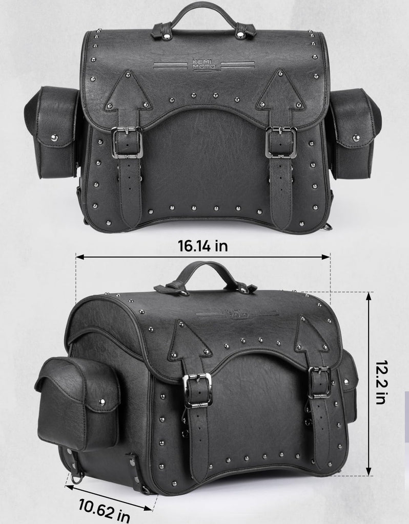 - Waterproof: Our Motorcycle Storage Bag different from the cloth material on the market, we use upgraded leather material to maintain the shape during driving and increase waterproofness,built to withstand the rigors of long-distance rides. Whether encounter rain, dust, or rough terrains, rest assured that your belongings will remain safe and dry inside this reliable bag