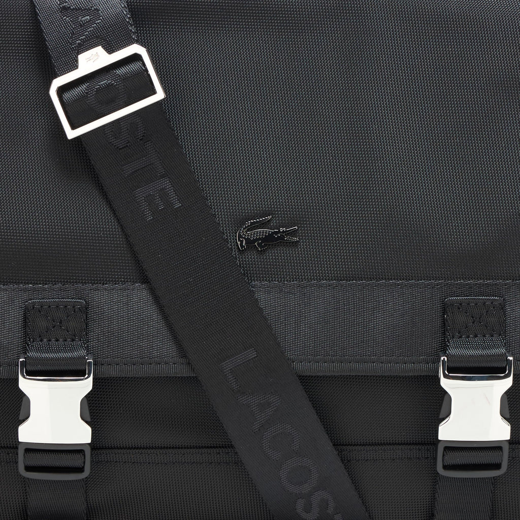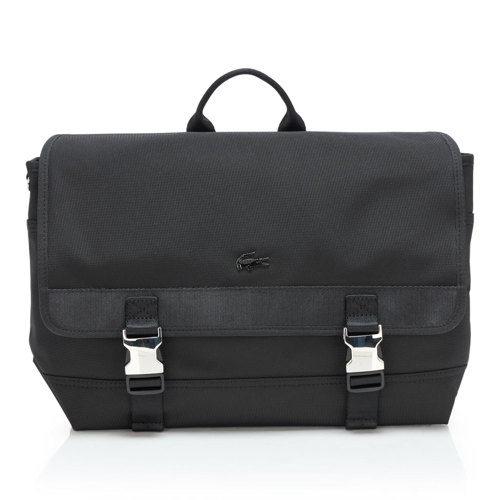 Lacoste Kome Shoulder Messenger Bag with iPad Pocket for Men, Noir, Noir, Western