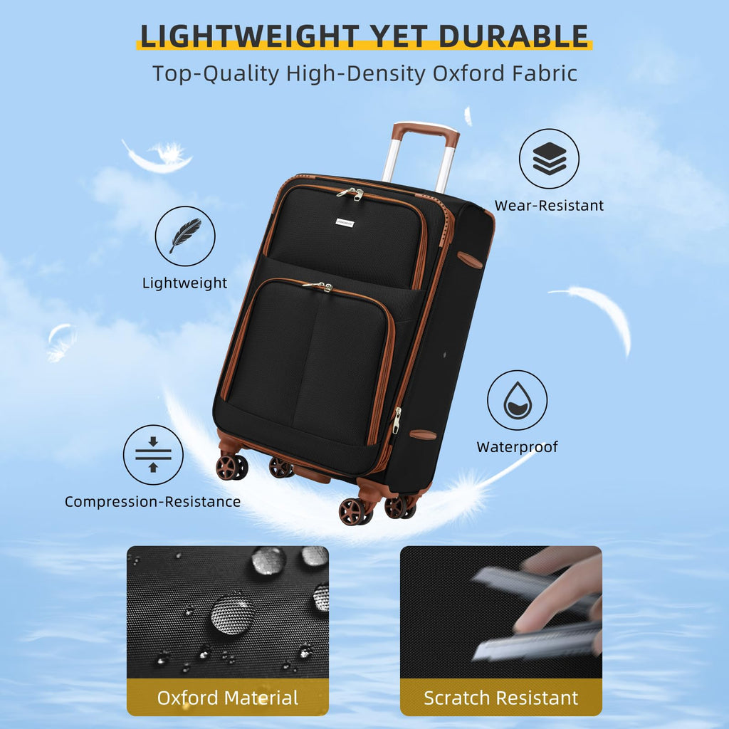 - Premium Suitcase Set: Soft shell luggage is crafted from premium quilted lightweight and durable 1680D polyester fabric exterior which resists stains and abrasions. Additionally, its anti-wear edge design ensures long-lasting usage, making it a reliable choice for all your travel needs