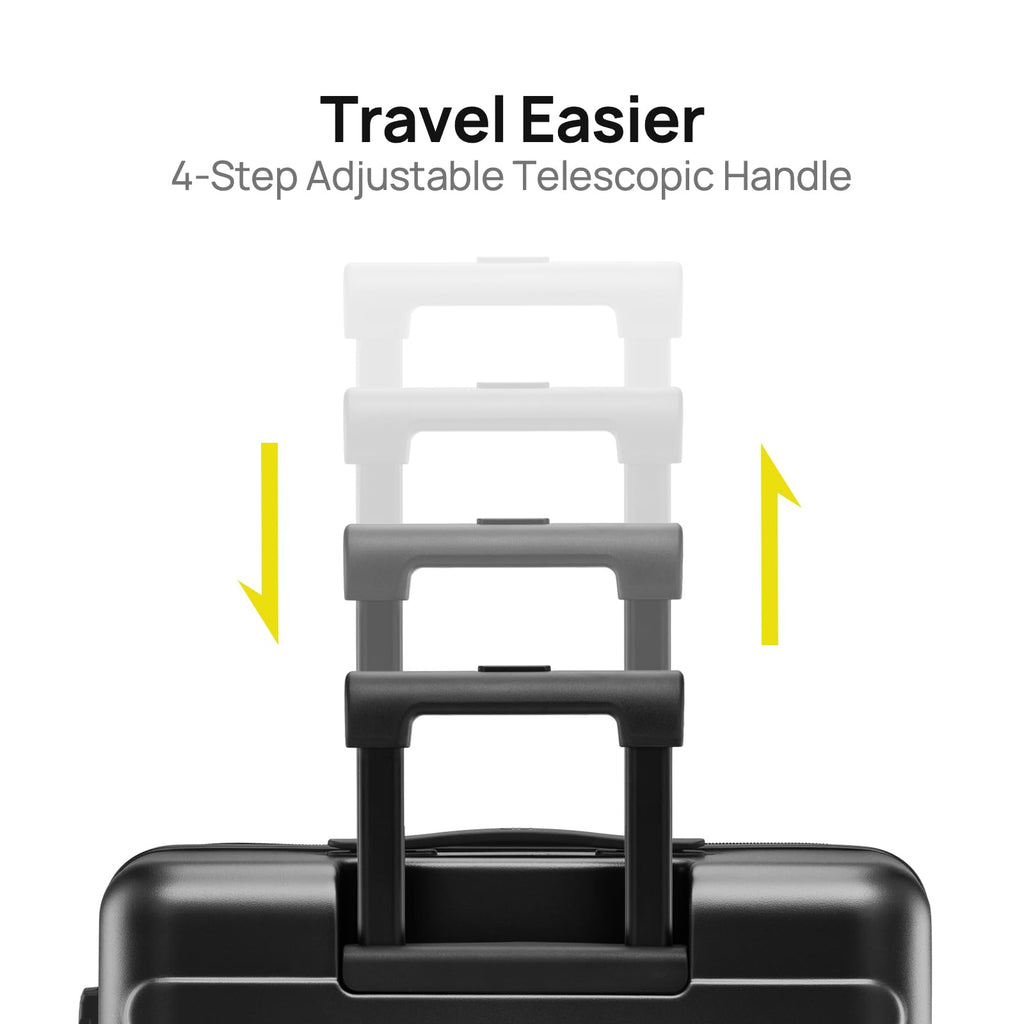 - 【Durable Hard Shell】Crafted from Germany Bayer PC material, this hard-shell PC luggage is scratch-resistant, odorless, and built to last. The sturdy aluminum telescopic handle adds extra strength and comfort for effortless handling.