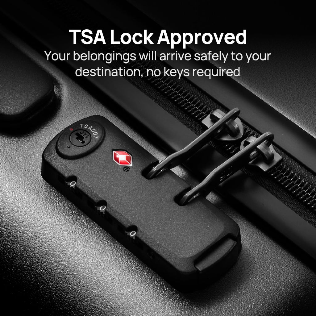- 【TSA Lock Included】The built-in TSA-approved lock (default password: 0-0-0) ensures your belongings stay secure while allowing airport security to inspect your luggage without damage. Set your own password for added peace of mind.