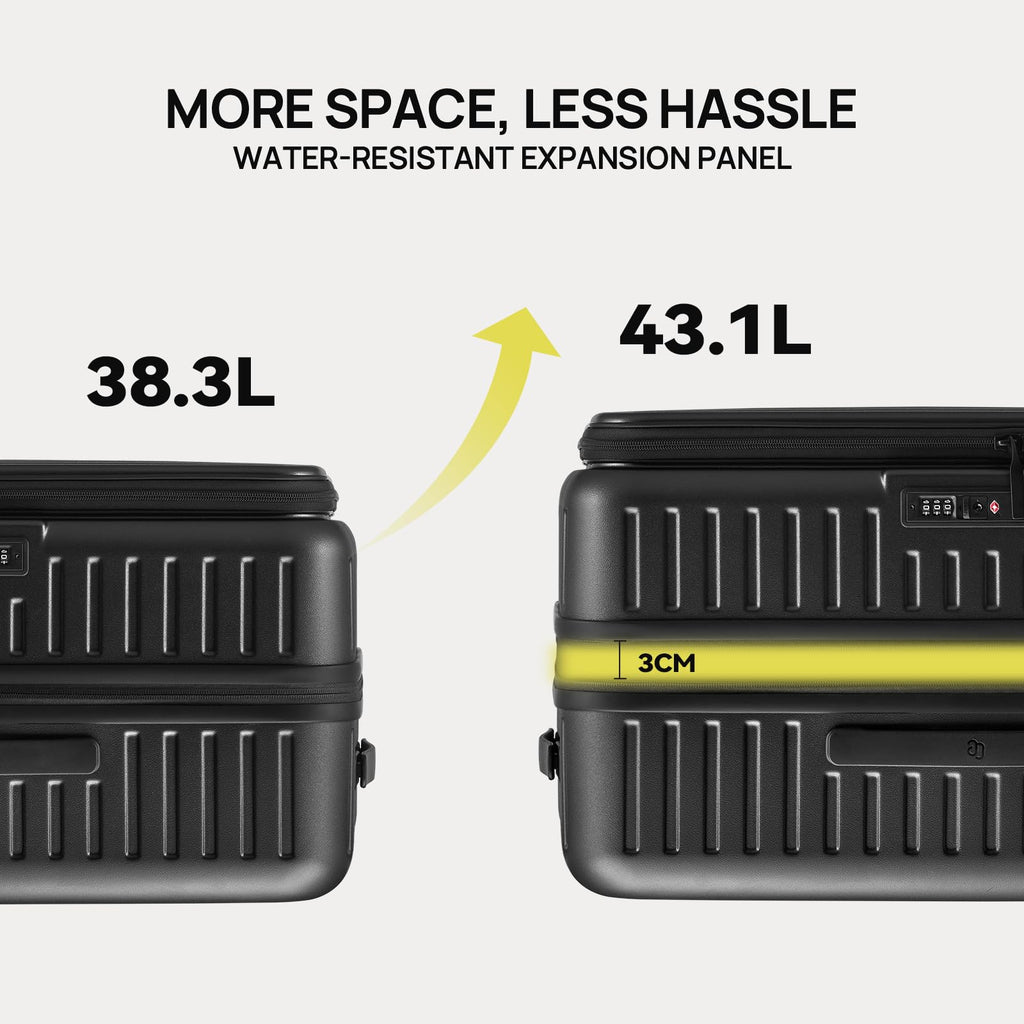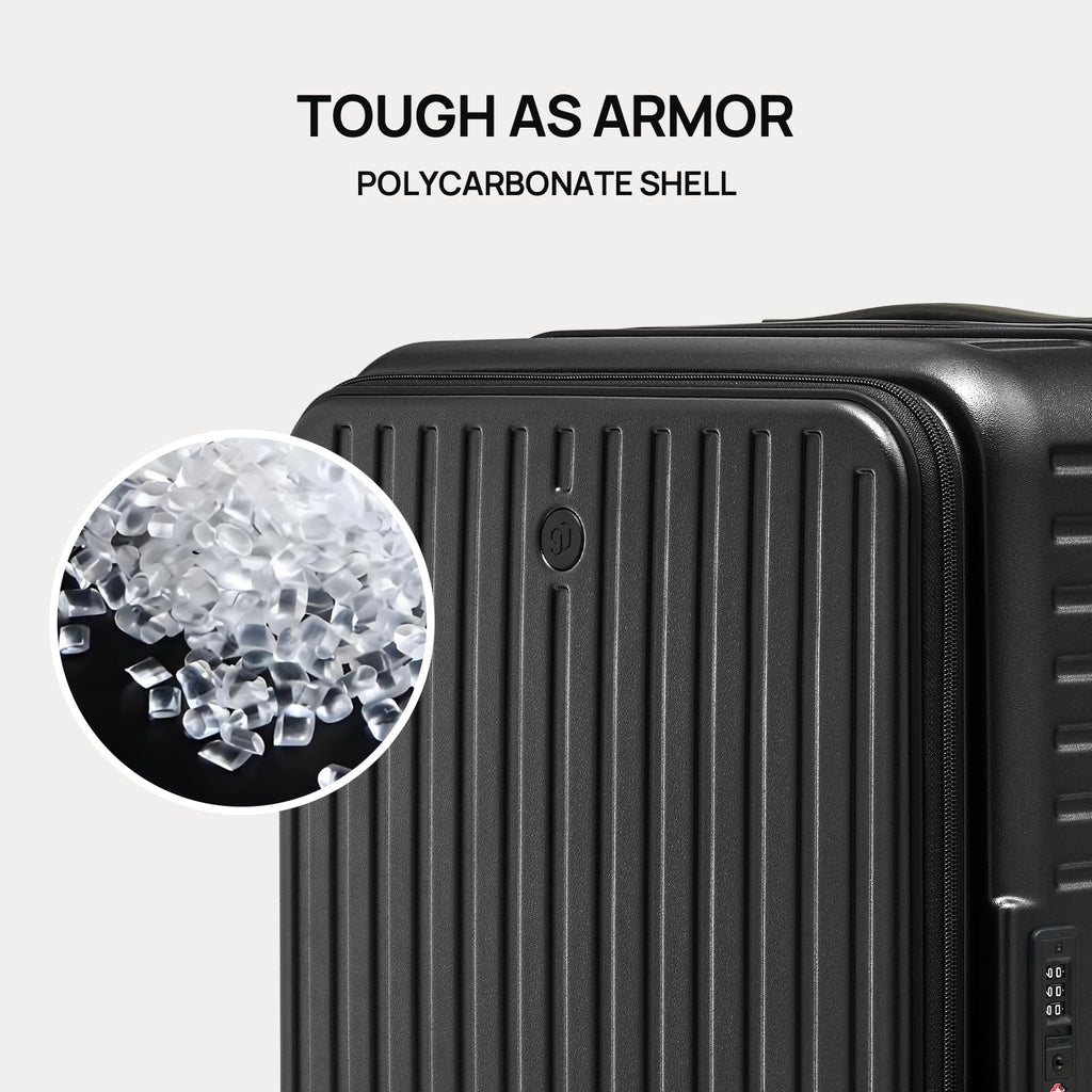 • 【Rugged Alpine-Stripe Polycarbonate Armor】Inspired by the durable peaks of the Alps, our distinctive vertical-stripe shell is forged from high-performance polycarbonate. This impact-resistant armor is designed to withstand rough baggage handling, while the deep texture naturally helps conceal scuffs and scratches earned through real travel. Built to look great trip after trip, it carries the story of your adventures without appearing worn.