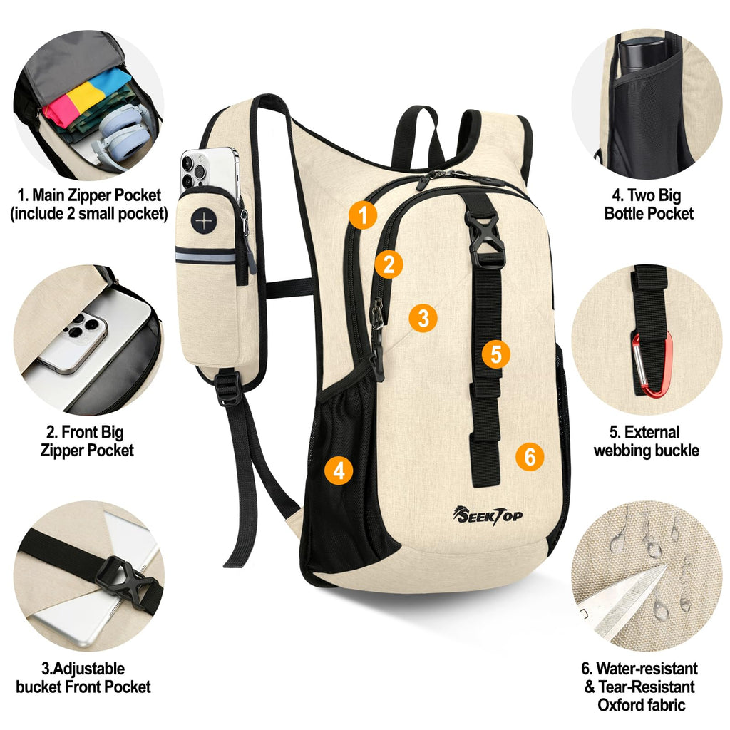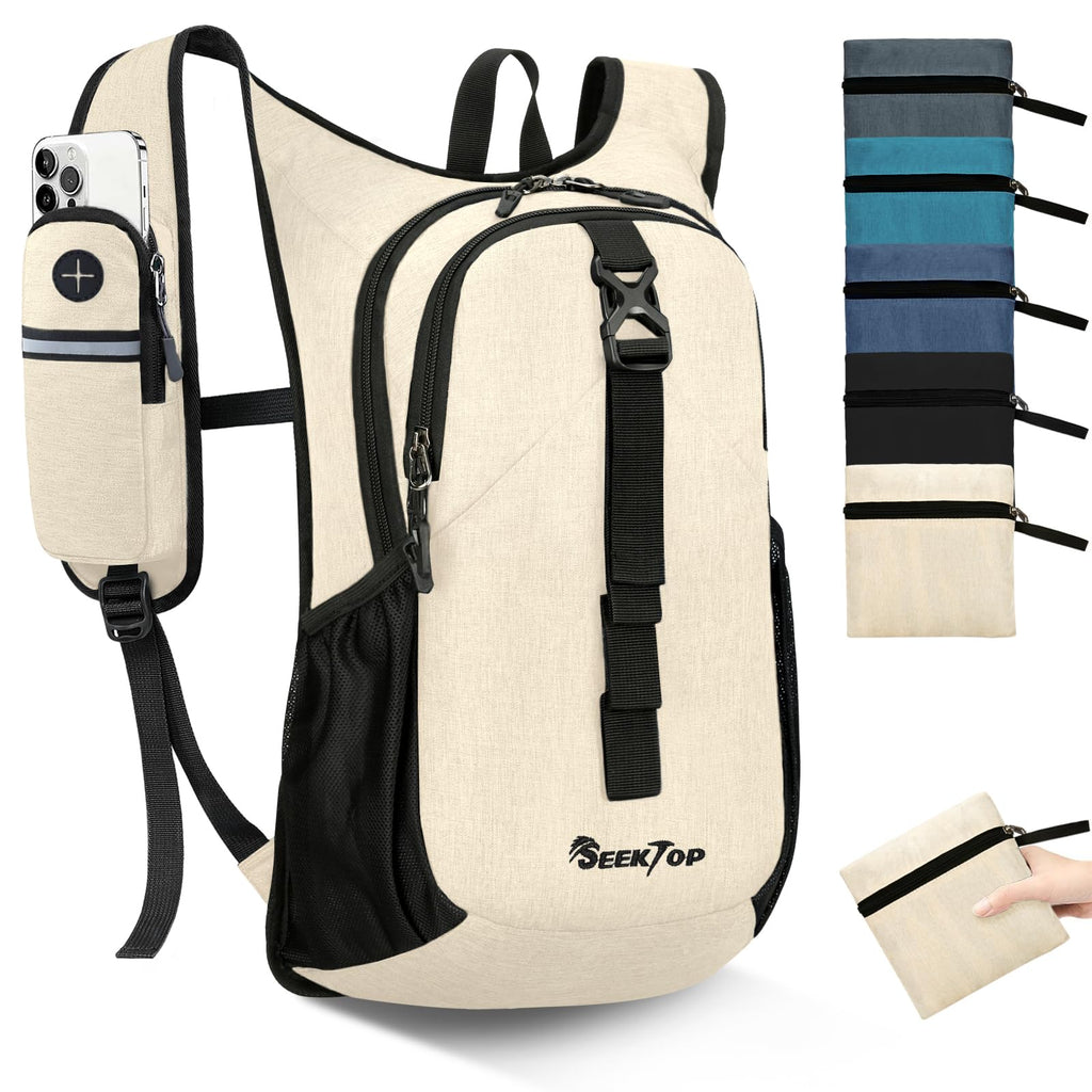 Seektop 15L Small Hiking Backpack for Women Men, Lightweight Hiking Packable Daypack with Phone Pocket for Travel Camping (Beige, 15L)