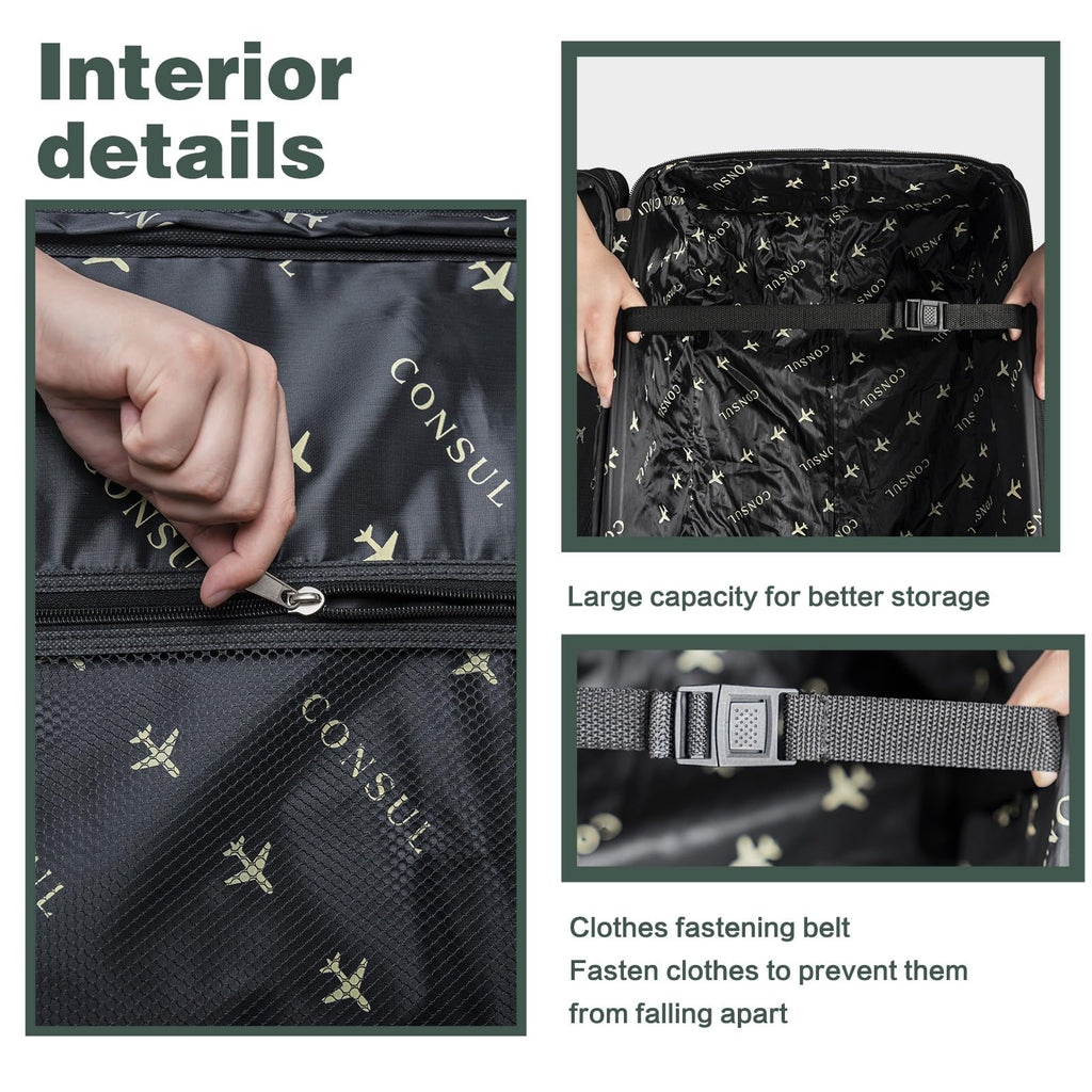- SMART INTERIOR & EXTERIOR ACCESS: Stay organized with multiple interior compartments including mesh pockets and garment straps. The exterior features a convenient front pocket, perfect for a laptop or book, allowing quick access to travel essentials without unzipping the main compartment of your spinner suitcase 4 wheels.