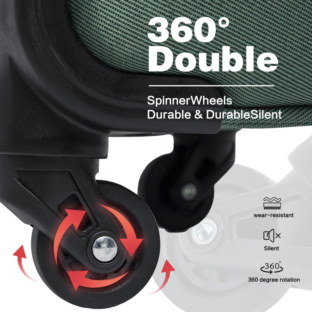 - MULTI-DIRECTIONAL SPINNER WHEELS: Navigate busy airports with ease thanks to the 360° spinner wheels. This luggage set softside features eight smooth-rolling wheels per bag, providing exceptional stability and effortless maneuverability. The telescoping handle glides smoothly, making these lightweight suitcases with 360 wheels a dream to travel with.