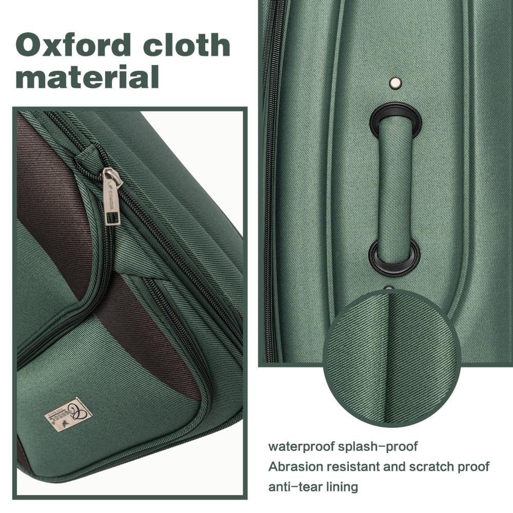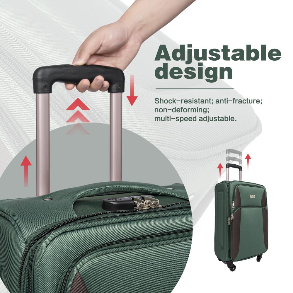 A: For sure. The premium dark green finish offers a sophisticated, modern look that stands out on the baggage carousel. The fabric is not only durable but also stain-resistant and easy to wipe clean, ensuring your softside luggage bags look great trip after trip, whether you're traveling for business or leisure.