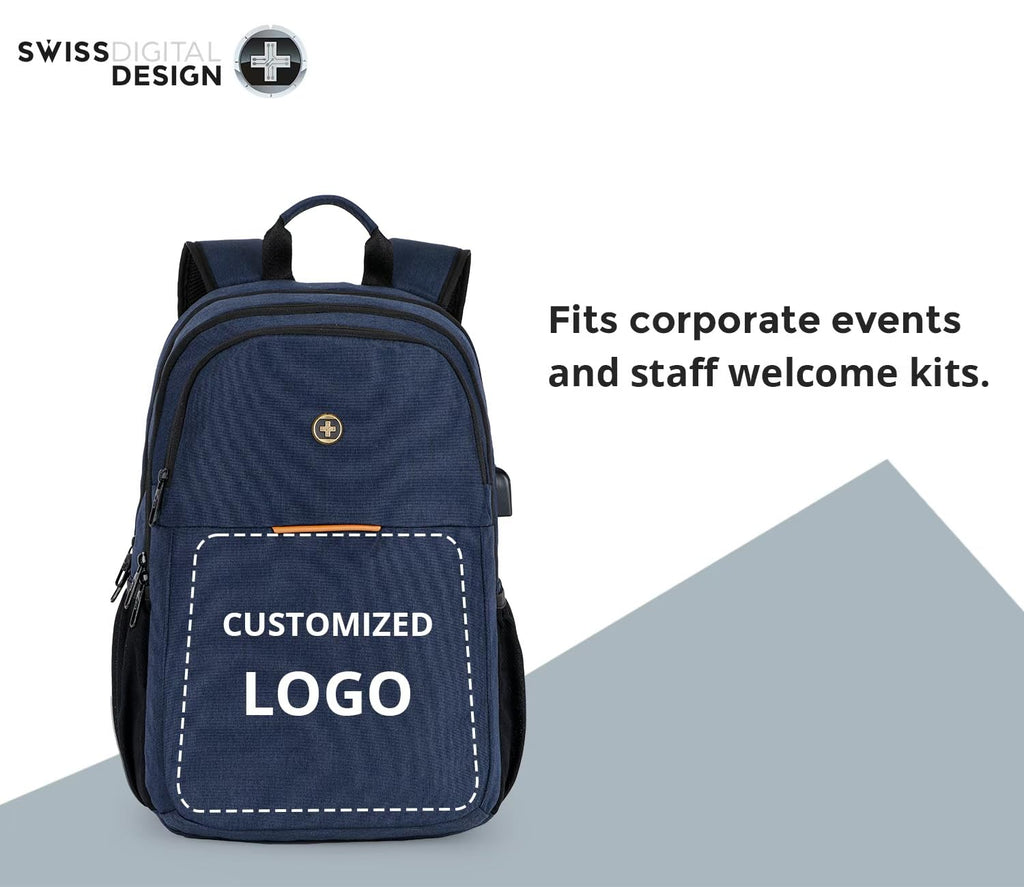 Swissdigital Design College 17 inch Laptop Backpack, Slim Business Travel Laptop Backpack With USB Charging Port For Women & Men Laptop Dark Blue (BIBERSTEIN SD1636-12)