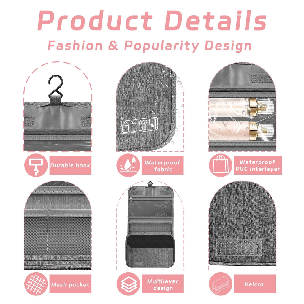 - Durable Material&Sturdy Hook: This toiletry bag is made of polyester which is sturdy and durable,waterproof and moistureproof,Featuring a built-in hook can be easily hung on bathroom door, shower pole, towel rack, coat hook or any available space.